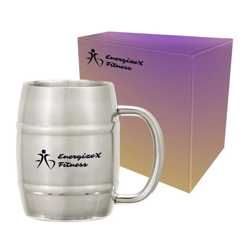 The barrel like mug in box is a great and useful promotional freebie you can hand out to your clients. This 14 oz. barrel shaped mug comes in a gift box and you can have your company’s name or logo printed on both the mug and box, making sure that your clients remember your brand when you give this to them.