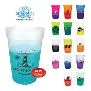 Changes colors with ice cold liquids. Ideal for events – fun, eye catching and engaging. Thick and durable walls, great reusable cup. Industry’s greatest color choices – 15 colors to pick from! Assorted colors welcome at no additional cost. Made in the USA. Durable BPA free plastic. Top shelf dishwasher safe. 2 styles of optional lids available. Complies with Prop 65. 5″ H x 3 7/16″ Diameter