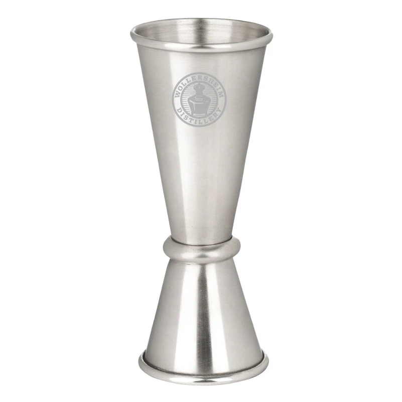 Tall Japanese style brushed stainless steel jigger with both 1 oz. and 2 oz. measurements. Perfect for any home, hobby or professional bartender. Pour alcohol accurately when crafting your favorite cocktail. Hand wash only. Pricing includes laser engraving. 4 1/2″ L x 1 3/4″ Diameter