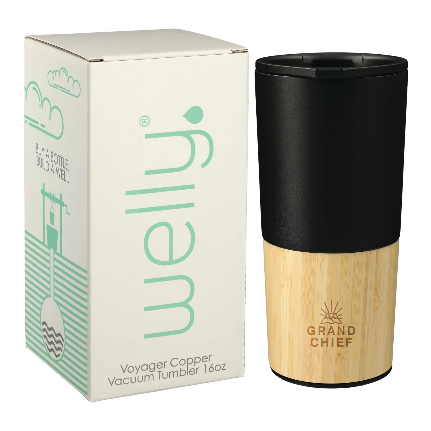 The Welly® 16 oz. Copper Vacuum Tumbler with Gift Box features double-wall stainless steel vacuum construction with copper insulation, chilling beverages for 24 hours or keeping them hot for 8 hours. Its unique construction also prevents exterior condensation. This 16 oz. Welly® tumbler has a screw-on lid with a slide closure and wide opening to give you a comfortable pour every time. Welly contributes 1% of sales toward construction of wells in areas without clean water. 3.89″ D x 3.89″ W x 7.71″ H